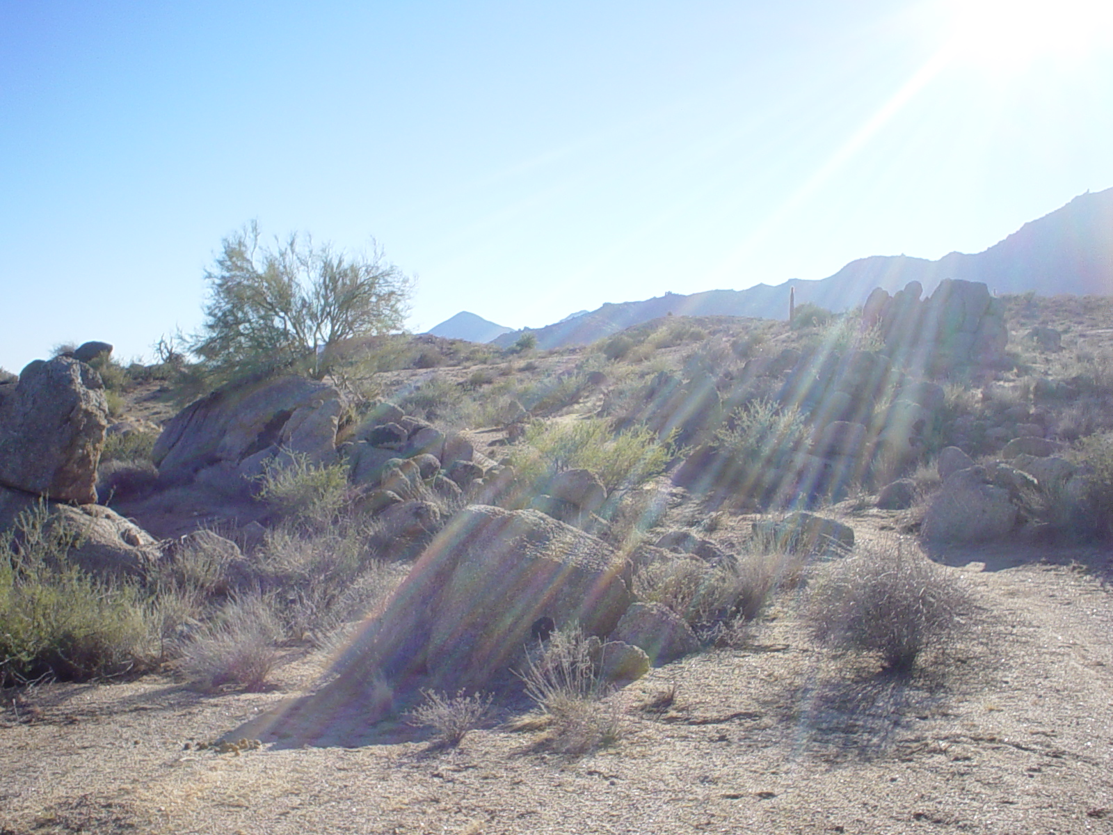 The area experienced severe rain this past weekend and I saw the evidence of the resulting floods on the trails. It was difficult to follow the route in sections as all previous tracks had been wiped clean. At one point, upon entering a wash, I couldn't see where the trail exited on the other side so started following some fresh hoof prints. I assumed the prints were left by horses but after arriving at a watering trough after a few minutes of riding I realized I'd been following a group of thirsty cows! At times I encountered puddles which seemed out of place in the amongst the cactus, sand and rock of the desert. Some trails had seen no traffic since the storms and these, especially the Secret Trail, were the hardest to follow. Even on the road leading into the park I drove over sand and debris deposited by the massive run off. Average rainfall for Scottsdale in November is .80 inches. There was no recorded precipitation until the last day of the month - November 30th, Friday - when it nearly doubled the average with 1.53 inches!